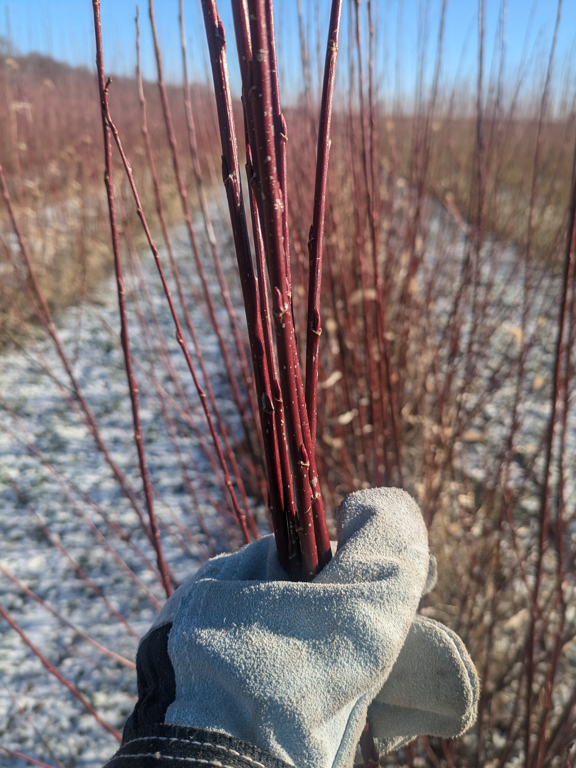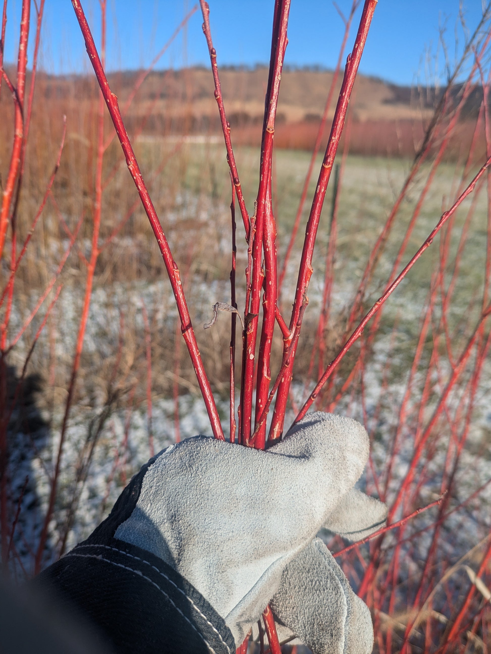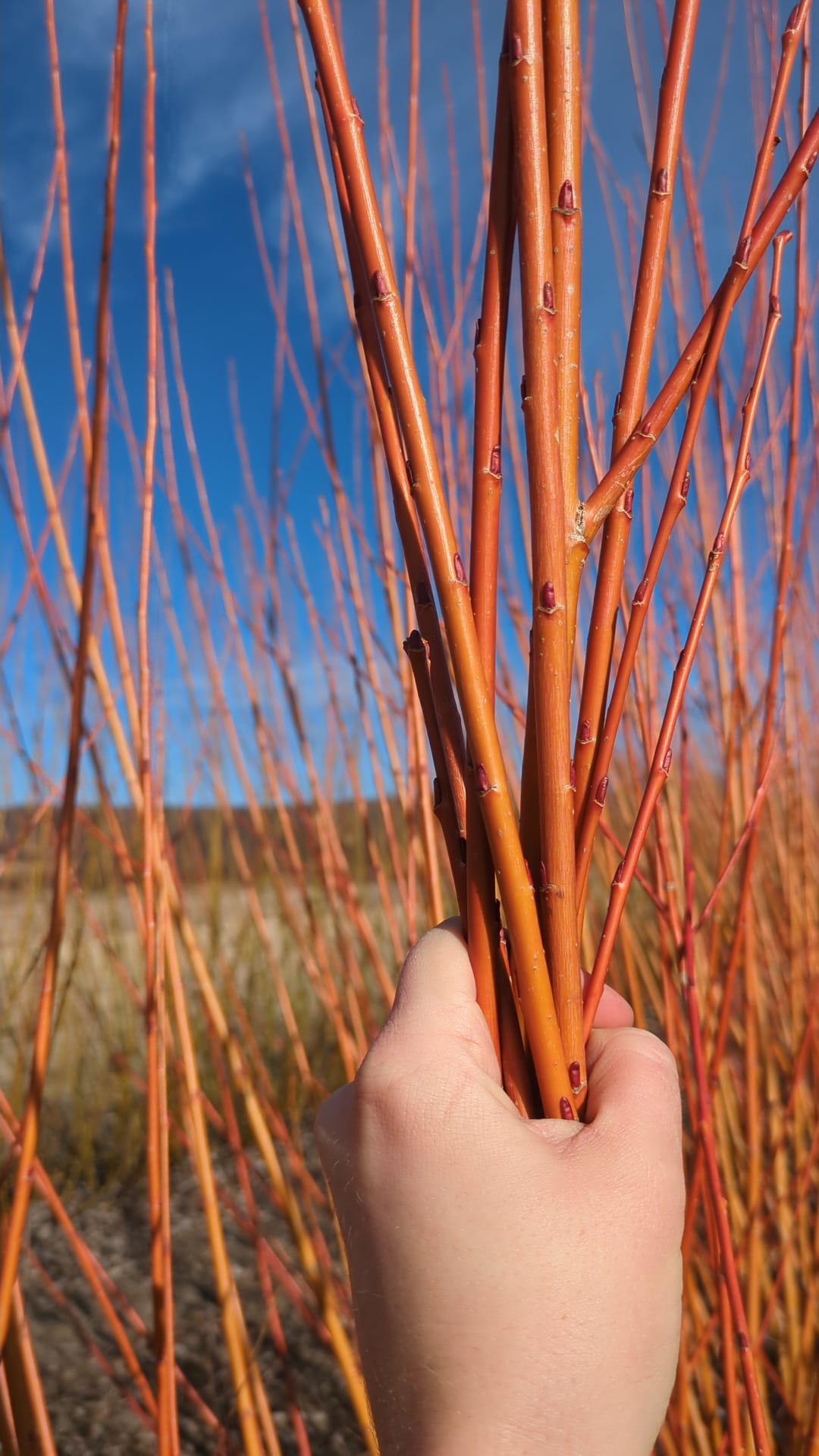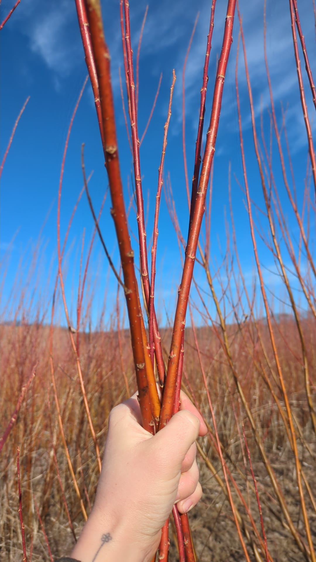 Special Notes: Long stems, great for weaving. Generally evenly thick rods. Dries darker red.