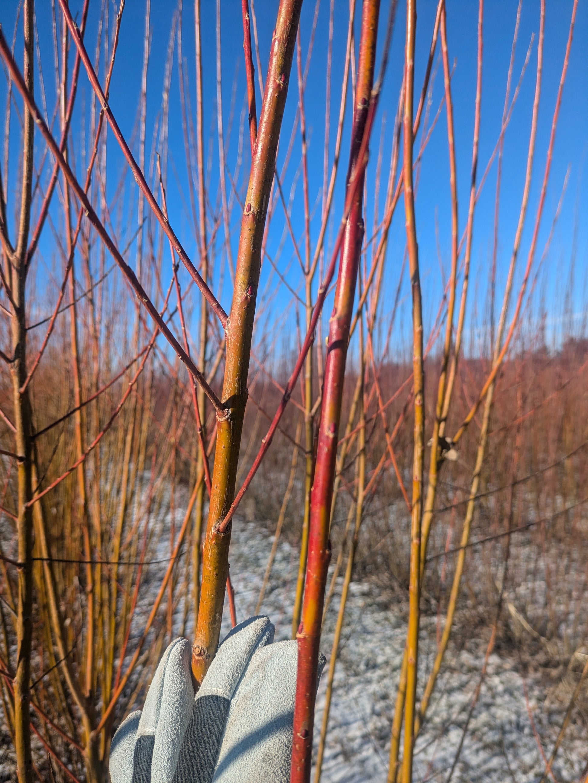 Special Notes: Male. Good winter color. Good for weaving. Thinner rods somewhat prone to branching.